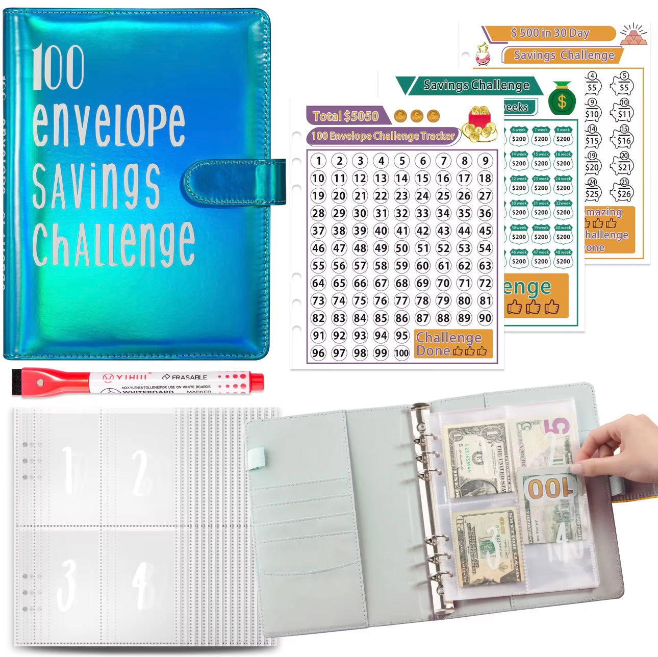 100 Envelops Savings Challenge Blue